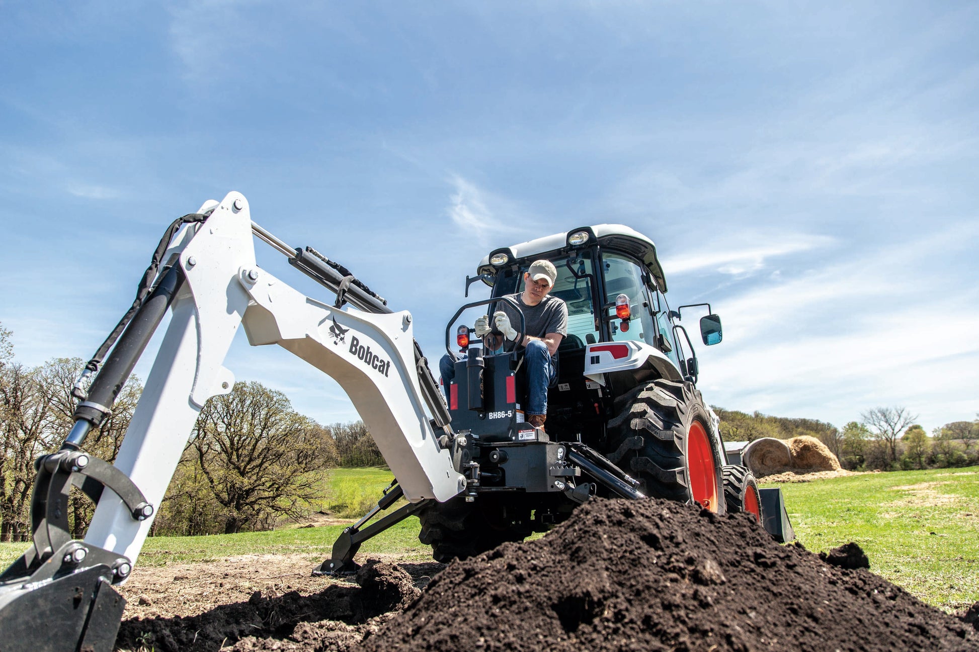 This 40-hp compact tractor offers performance and comfort with hydrostatic transmission and factory-installed heated and air-conditioned enclosed cab.